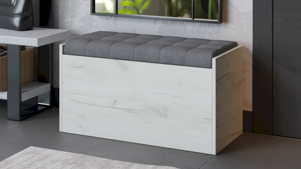 Эксклюзивная древесная текстура каркаса пуфа «Дуб крафт Белый» в сочетании с велюром «Серый» станет эффектным дополнением в дизайне прихожей, кухни и других уголках квартиры.