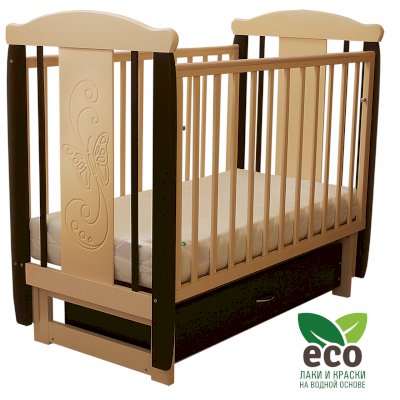 Кроватка "Соня 04" имеет механизм качания поперечный маятник. Механизм качания фиксируется. Возможен вариант с ящиком.