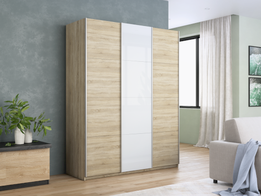 Шкаф-купе 3-х дверный Прайм ДСП/Белое стекло/ДСП (Е1)