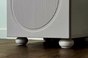 Корпус тумбы выполнен из ЛДСП толщиной 16 мм, фасады изготовлены из МДФ в плёнке ПВХ и декорированы фрезеровкой, подчёркивающей стиль серии Милана. Оригинальные круглые ручки и опоры дополняют дизайн, придавая мебели лёгкий и аккуратный внешний вид.