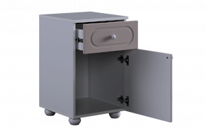 Милана Тумба (с ящиком) — универсальный модуль для детской комнаты, который может использоваться как прикроватная тумба или как компактный комод. Практичное сочетание ящика и закрытого отделения позволяет удобно хранить как мелкие, так и более объёмные вещи.