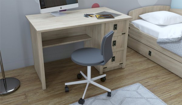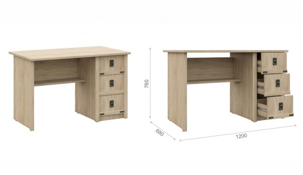 Письменный стол "Валенсия" выполнен в оригинальном морском стиле - декоративные накладки из МДФ, стилизованные металлические ручки MARINE бронзового цвета и декоративные элементы в тон создают имитацию корабельной мебели. Широкая столешница толщиной 22 мм, прочная и массивная как из натурального дерева, позволяет разместить все необходимые предметы под рукой. Главное преимущество стола - это безопасность использования: отсутствуют острые углы по краям, мягкая кромка 2мм. Выглядит эстетично со всех сторон - можно поставить в комнате под любым ракурсом.