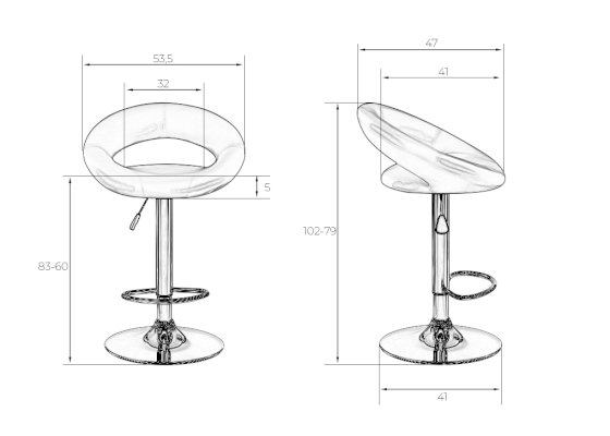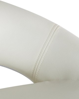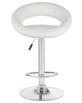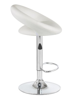 • Толстая ножка высокого барного стула, как и основание, имеет хромированное покрытие. Она удерживает сиденье с удобной полукруглой спинкой шириной 32 см и глубиной 41 см. Внутри него имеется мягкий наполнитель. Обивка выполнена из приятной на ощупь экокожи.