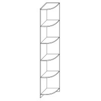 Стеллаж угловой — один из элементов в коллекции мебели для спальни «Парма». Он позволяет удобно и лаконично закончить группу шкафов. Стеллаж можно соединить с другим изделием межсекционными стяжками. В этом случае он будет выглядеть просто естественным продолжением шкафа.