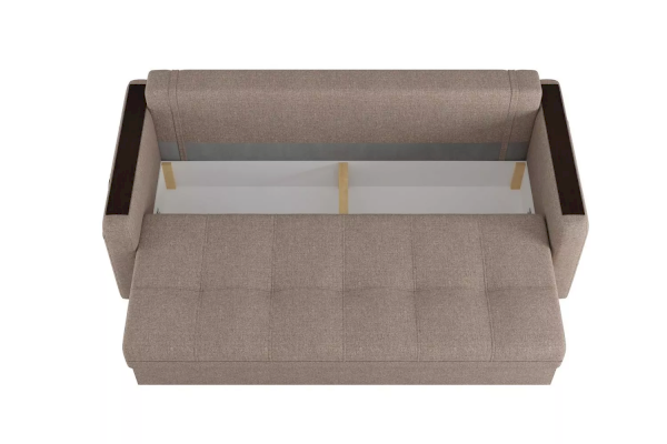 Механизм раскладывания "пантограф" не требует отодвигания дивана от стены и работает из стационарного положения дивана. Благодаря наличию накладок на подлокотники можно положить смартфон или поставить чашку, что обеспечивает полезную рабочую поверхность. В комплекте к дивану можно заказать кресло-кровать или кресло с бельевым ящиком.