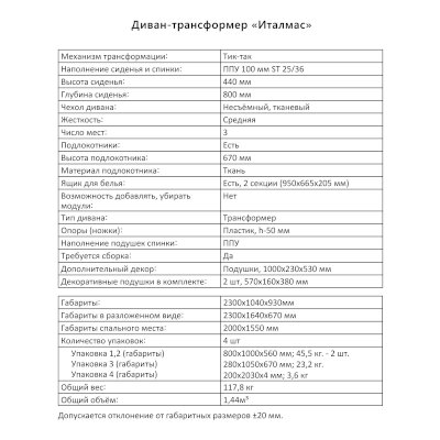 Диван-трансформер Италмас (Аквилон) - за 73 382 руб. в Майкопе. Купите на сайте mebelmarket-majkop.ru или по телефону 8(800)505-30-63 уже сегодня! Уточнить наличие, комплектацию, актуальную цену можно бесплатно у менеджера ежедневно. Закажите Диван-трансформер Италмас (Аквилон) до конца акции! Доступна покупка в кредит, рассрочку. Доставим со склада или на заказ.