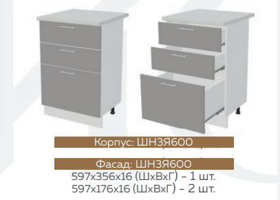 ШН3Я400 Шкаф нижний с 3 ящиками