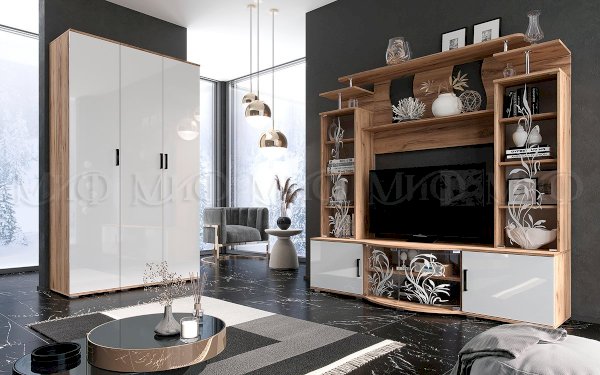 Белый глянец холодный/Дуб крафт